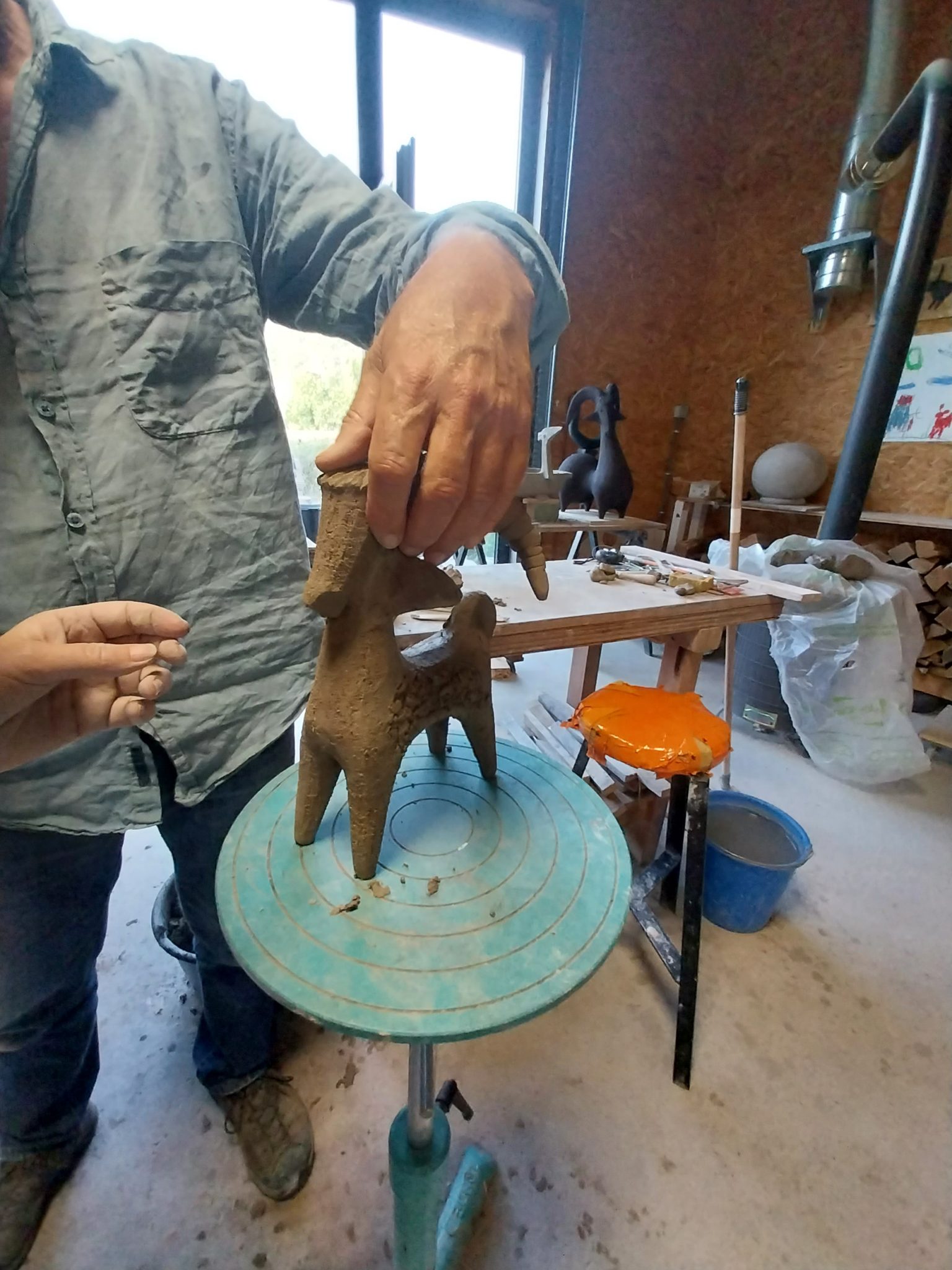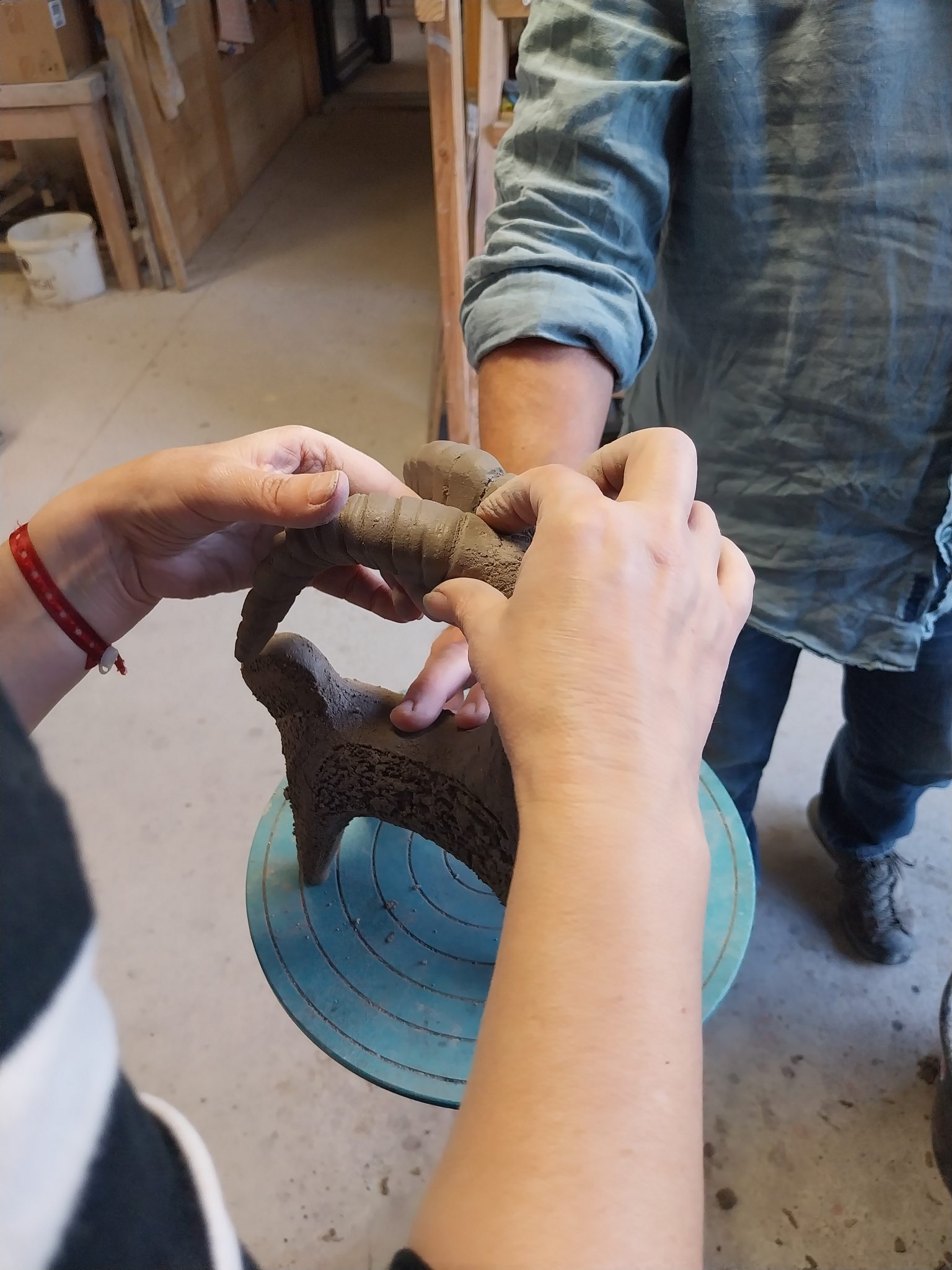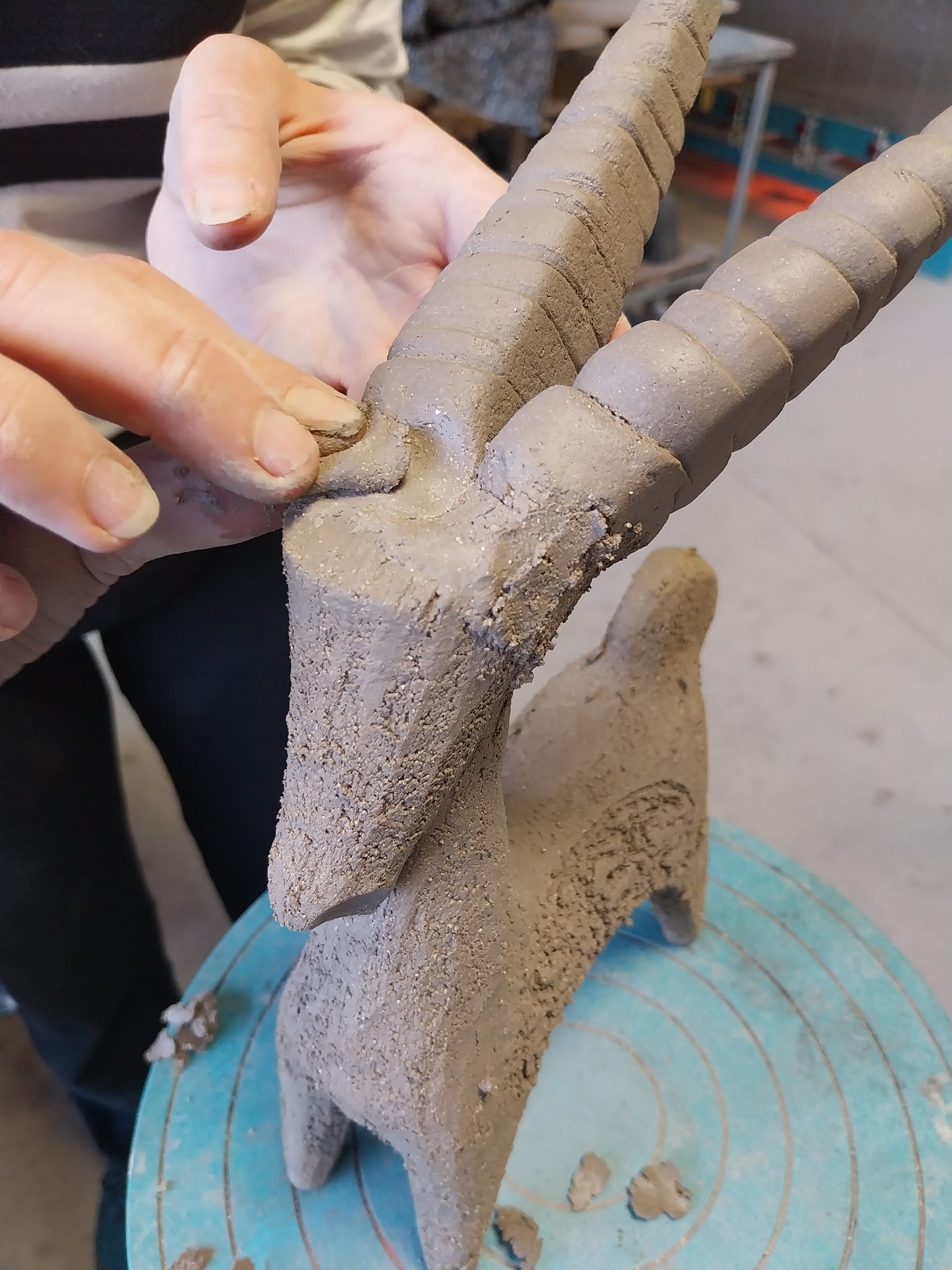 Grande première pour moi, pas très manuelle dans la tête, par contre appréciant les beaux objets, je me retrouve les mains dans la terre à faire des cornes et des oreilles.