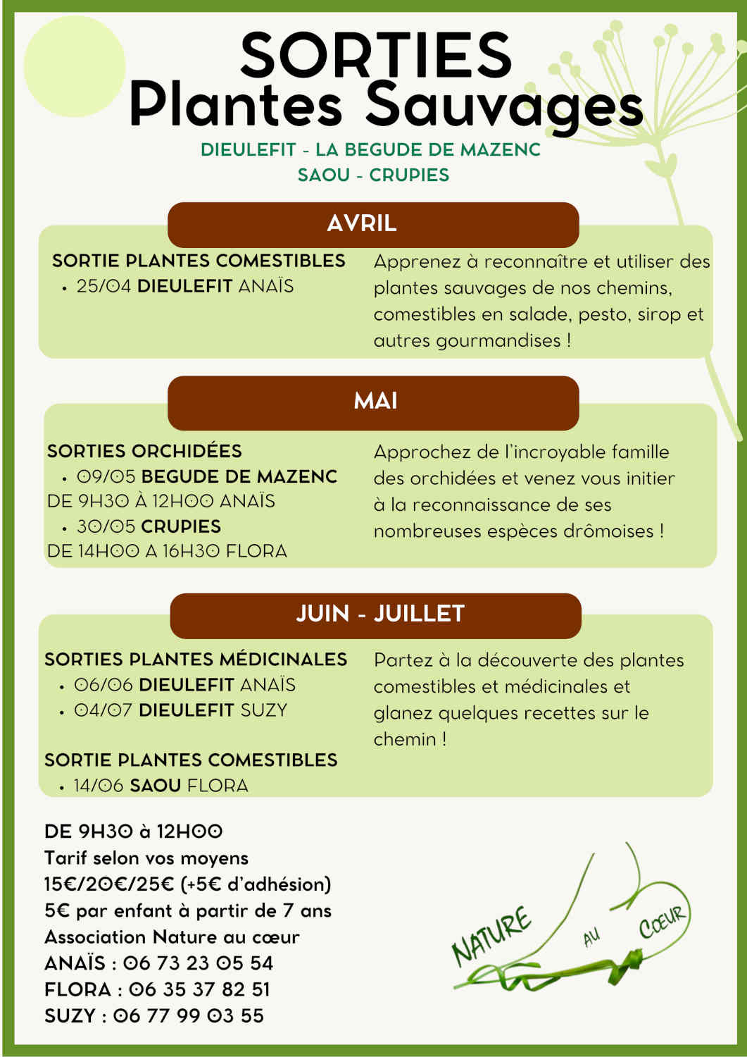 Prévoir 5€ d'adhésion à l'association Nature au Coeur