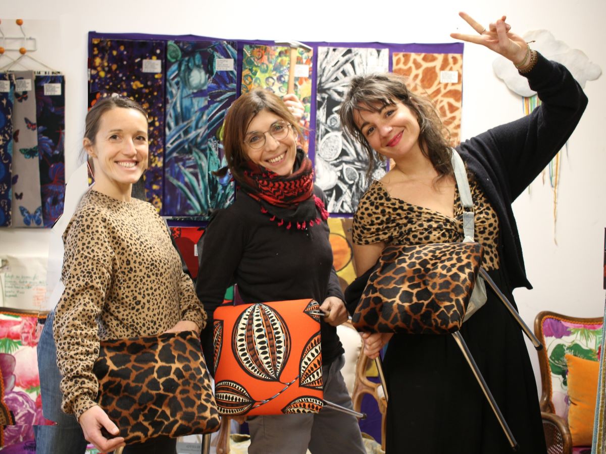 Tout est compris : tabouret, matériel, tissus (plus de 60 références de tissus à motifs ou unis, toiles, velours, outdoor...). Vous venez tout simplement, vous transformez le tabouret de votre choix et repartez avec!