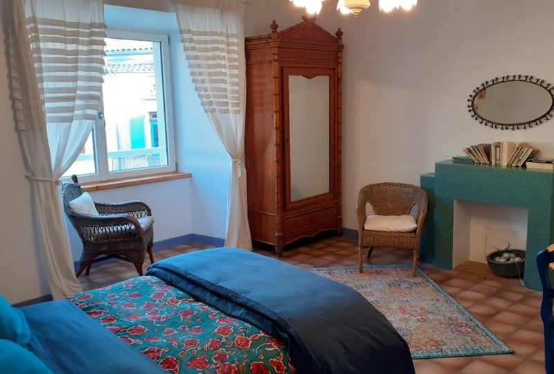 La chambre est située au premier étage d'une grande maison sur la place du village. Elle comprend les sanitaires, une alcôve privative pour loger un enfant ou un adulte supplémentaire. Petit- déjeuner continental, pain Bio maison, table d'hôte à la demande.