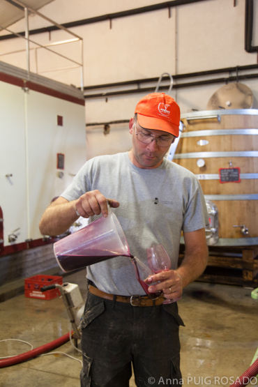 Elle y a trouvé bien plus que ce à quoi elle s’attendait ! Bien entendu un magnifique domaine en agriculture biologique, d’appellation AOC Grignan les Adhémar, un caveau, mais également des cultures d’abricots et de lavandin. Le tout dirigé avec passion par la famille Roux. La totalité de la vinification se fait sur place, dans une cave en demi sous-sol.