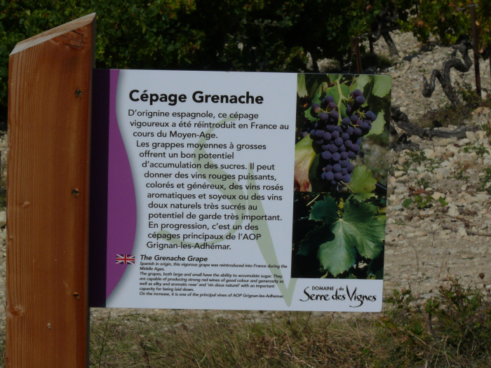 Elle y a trouvé divers cépages : la Syrah, le Grenache Noir et Blanc, le Viognier, le Mourvèdre ou encore le Carignan… Le terrain en coteaux du Serre des Vignes, argilo-calcaire et présentant un sous-sol marneux est idéal pour la culture de ces fruits en grappe.