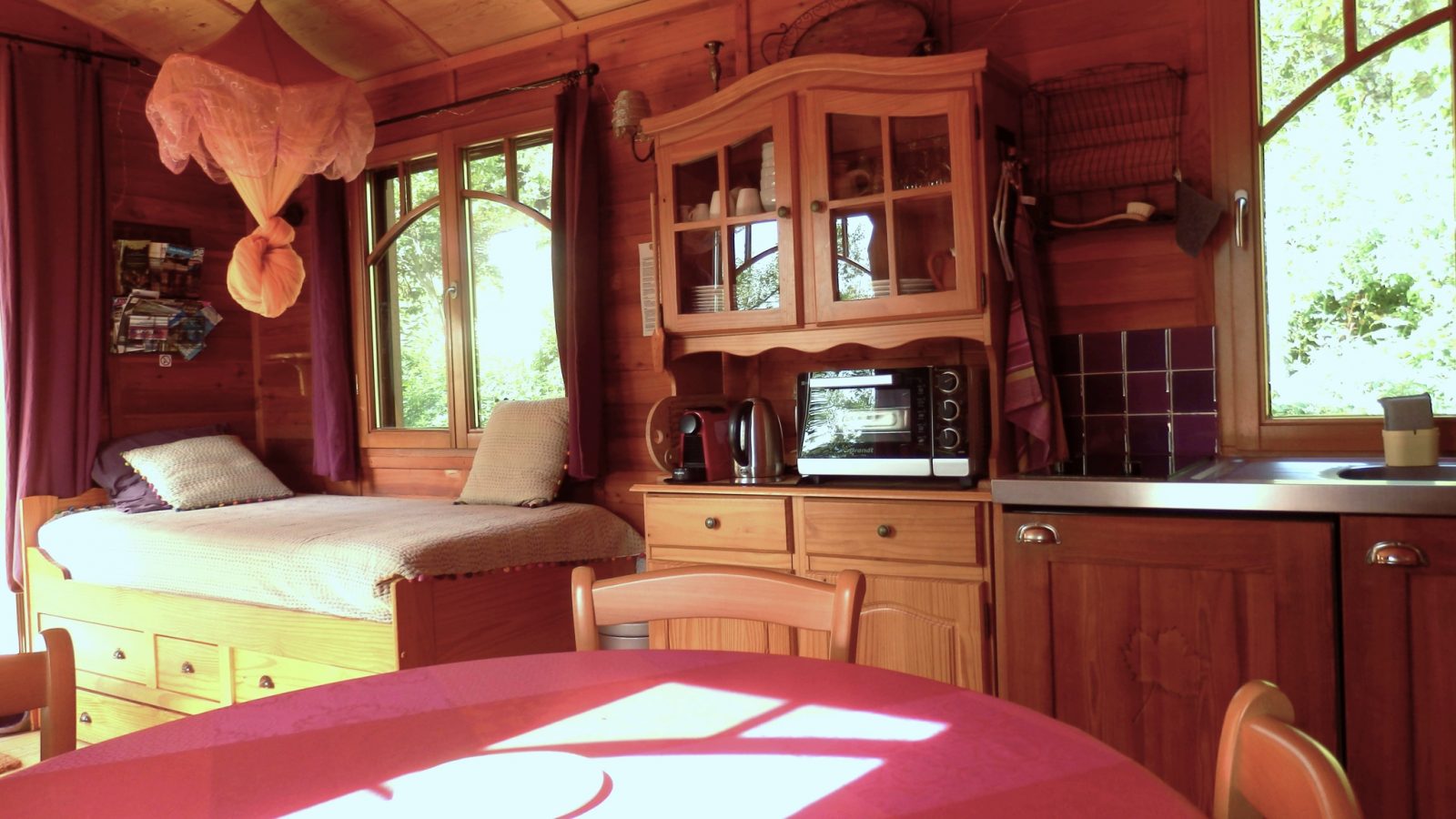Der Wohnwagen steht auf einem großen Privatgrundstück gegenüber dem Waldmassiv von Saoû, in einem halb geschlossenen Raum aus Trockensteinmauern, die die Schönheit der Gärten und Terrassen unserer Region ausmachen. Es ist sehr komfortabel und kann 2 bis 5 Personen beherbergen. Seine Lärchenholzvertäfelung, sein Eichenparkett, seine honigfarbenen Kiefernmöbel und seine Dekoration in warmen Farben schaffen eine warme Atmosphäre und einen angenehmen Ort der Entspannung. Mit einer Länge von 7,60 m und einer Breite von 3,10 m verfügen Sie über 22 m2 Nutzfläche, ein Badezimmer, ein separates Schlafzimmer und alle modernen Annehmlichkeiten. Auf einer kleinen Terrasse von 4,7 m2 können Sie Ihr Frühstück in der Morgensonne mit Blick auf das strahlende Massiv des Waldes von Saoû genießen. Er ist wie ein Chalet konzipiert (Holzrahmen, Steinwollisolierung, OSB-Verbundplatten, Regen- und Dampfsperre und Lärchenholzverkleidung), mit einem Dach aus echtem Zink, sehr gut isoliert (19 cm im Dach, 17 cm in den Wänden) und mit Elektroheizungen ausgestattet, davon eine mit gusseisernem Speicher im Wohnraum. Der Wohnwagen kann das GANZE Jahr über genutzt werden, auch wenn es schneit, denken Sie also an Ihren Winterurlaub!