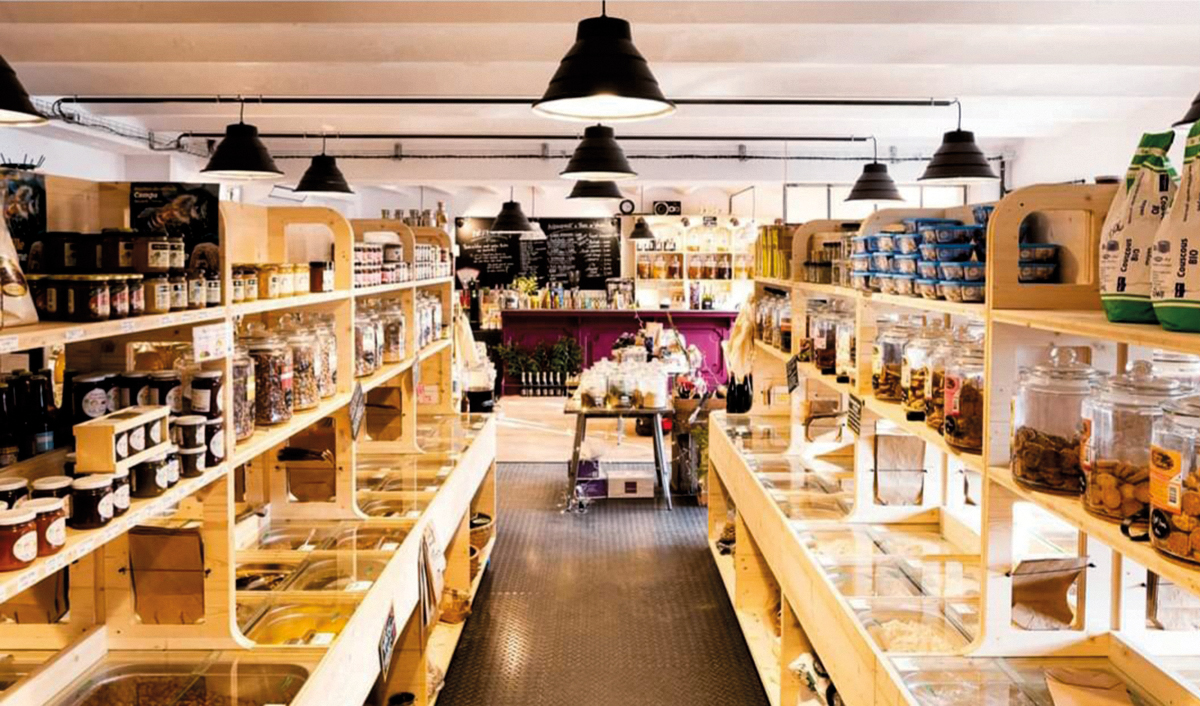 Schöner Weltladen in Verbindung mit Lebensmitteln aus der Region. Entdecken Sie eine große Vielfalt an Produkten in einem Bistro-Kantinen-Rahmen, in dem Sie mittags eine Mahlzeit zu sich nehmen können.
