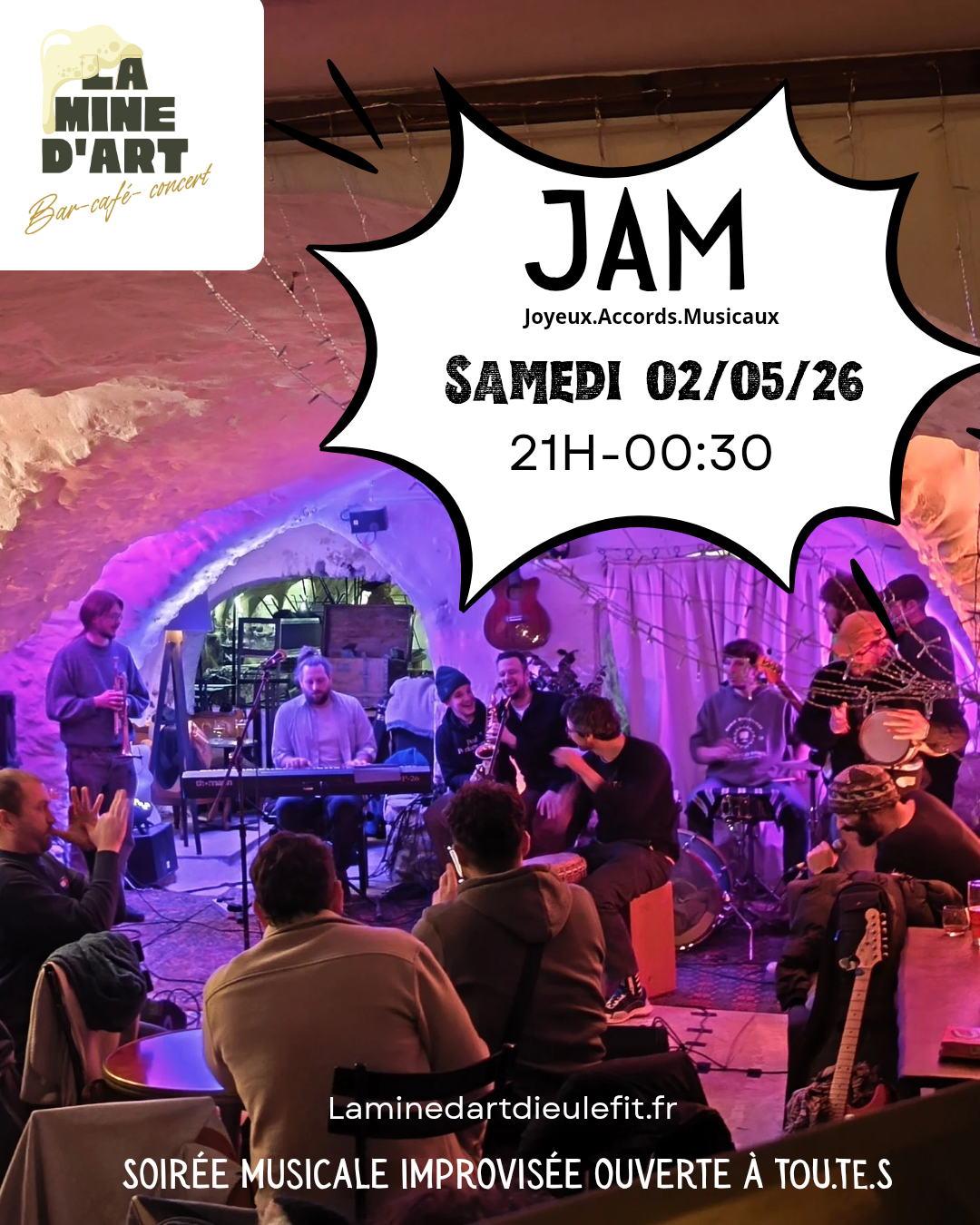 1 Description Opening Rate Situation Description Spoken languages French Themes Various music Opening Saturday 2 May 2026 from 9 pm. Rate Free of charge. Situation Show itinerary
