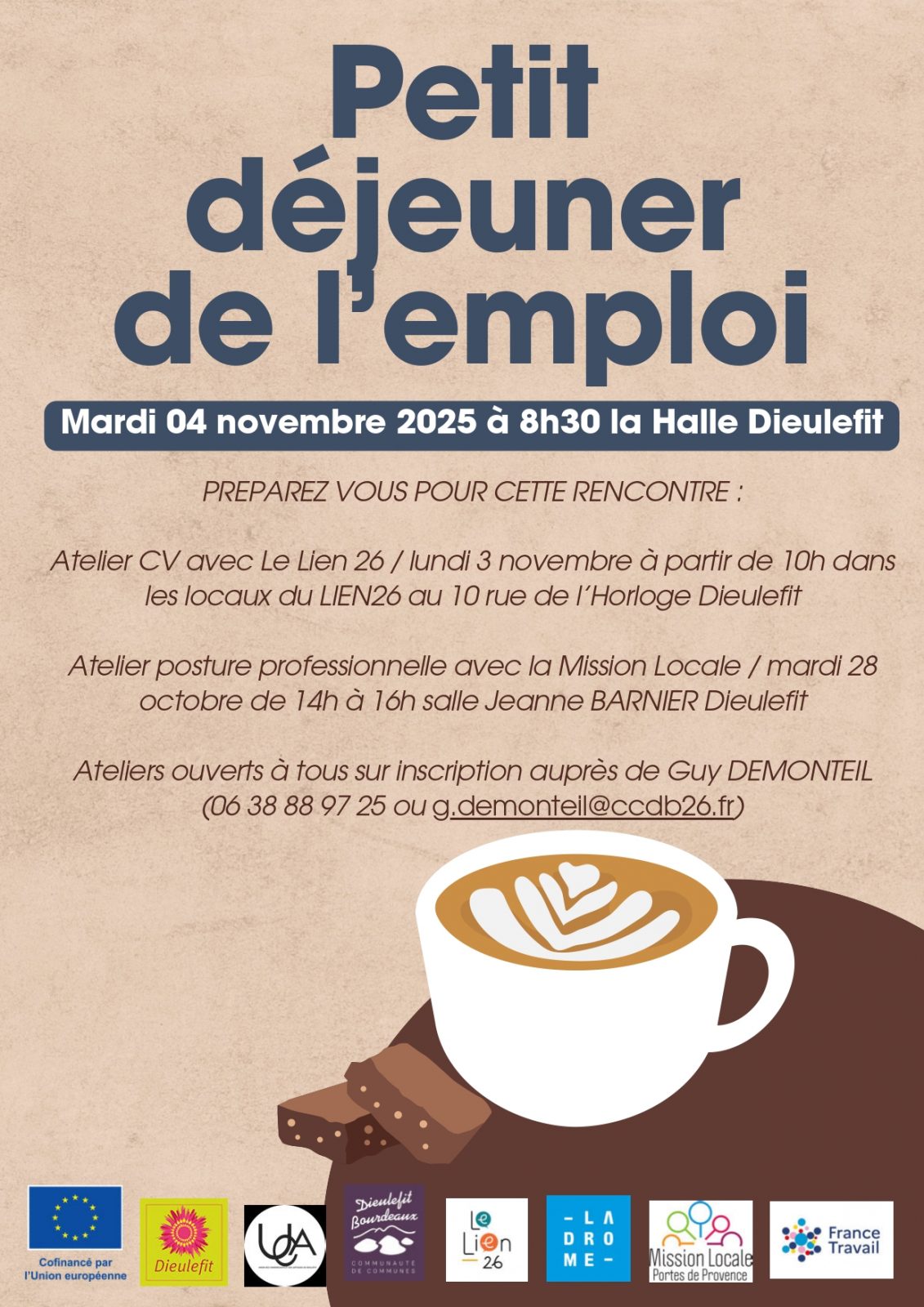 Home Page https://www.dieulefit-tourisme.com/en › Plan your trip Plan your trip › Calendar Calendar › Events Events › Petit déjeuner de l’emploi