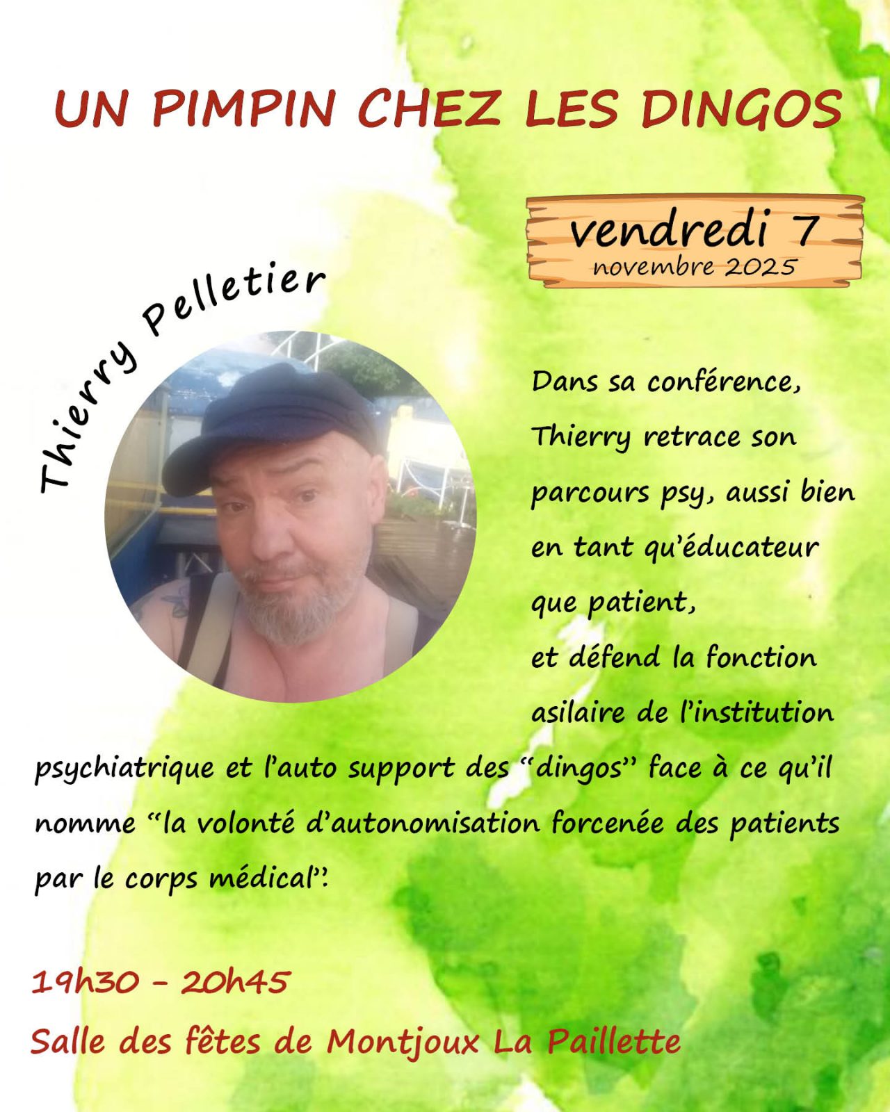 Home Page https://www.dieulefit-tourisme.com/en › Plan your trip Plan your trip › Calendar Calendar › Events Events › Un Pinpin chez les Dingos – Conférence gesticulée de Thierry Pelletier