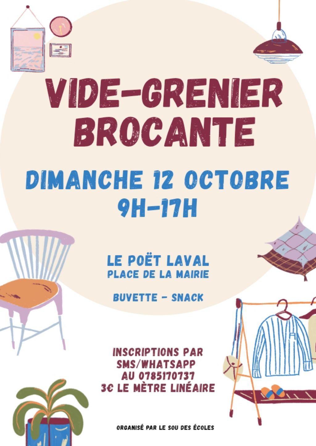 Vide grenier/brocante ouvert à tous sur la place de la mairie du Poët-Laval.