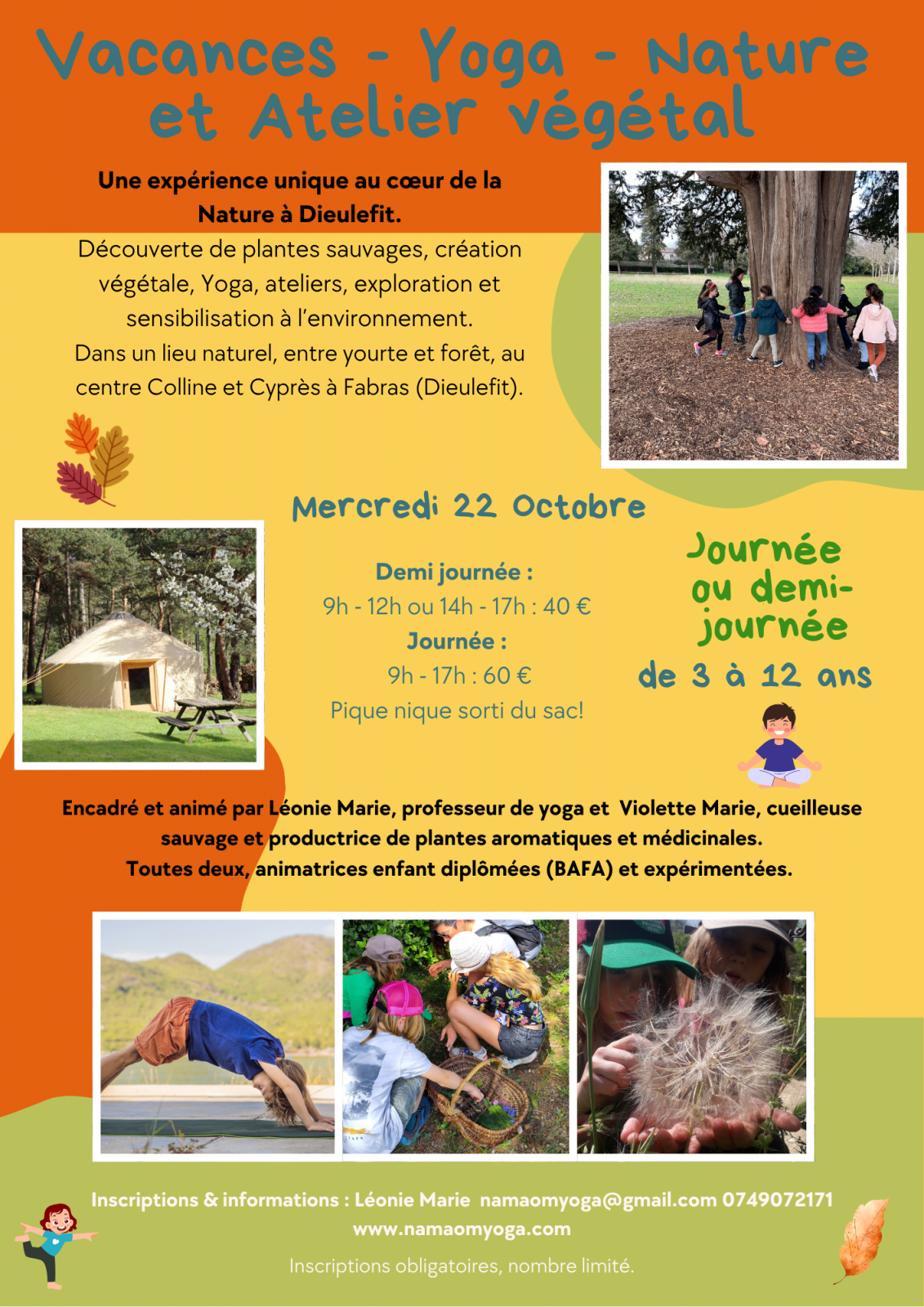 Encadré et animé par Léonie Marie, professeur de yoga et Violette Marie, cueilleuse sauvage et productrice de plantes aromatiques et médicinales. Toutes deux animatrices enfant diplômées ( BAFA ) et expérimentées.