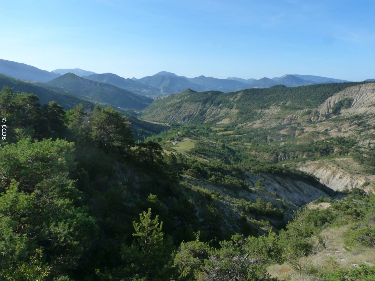Magnifique panorama sur Fond de Bîne, le ruisseau de Merdari et le Grand Delmas. Plus au sud, belle vue de gauche à droite sur les montagnes d’Angèle, de