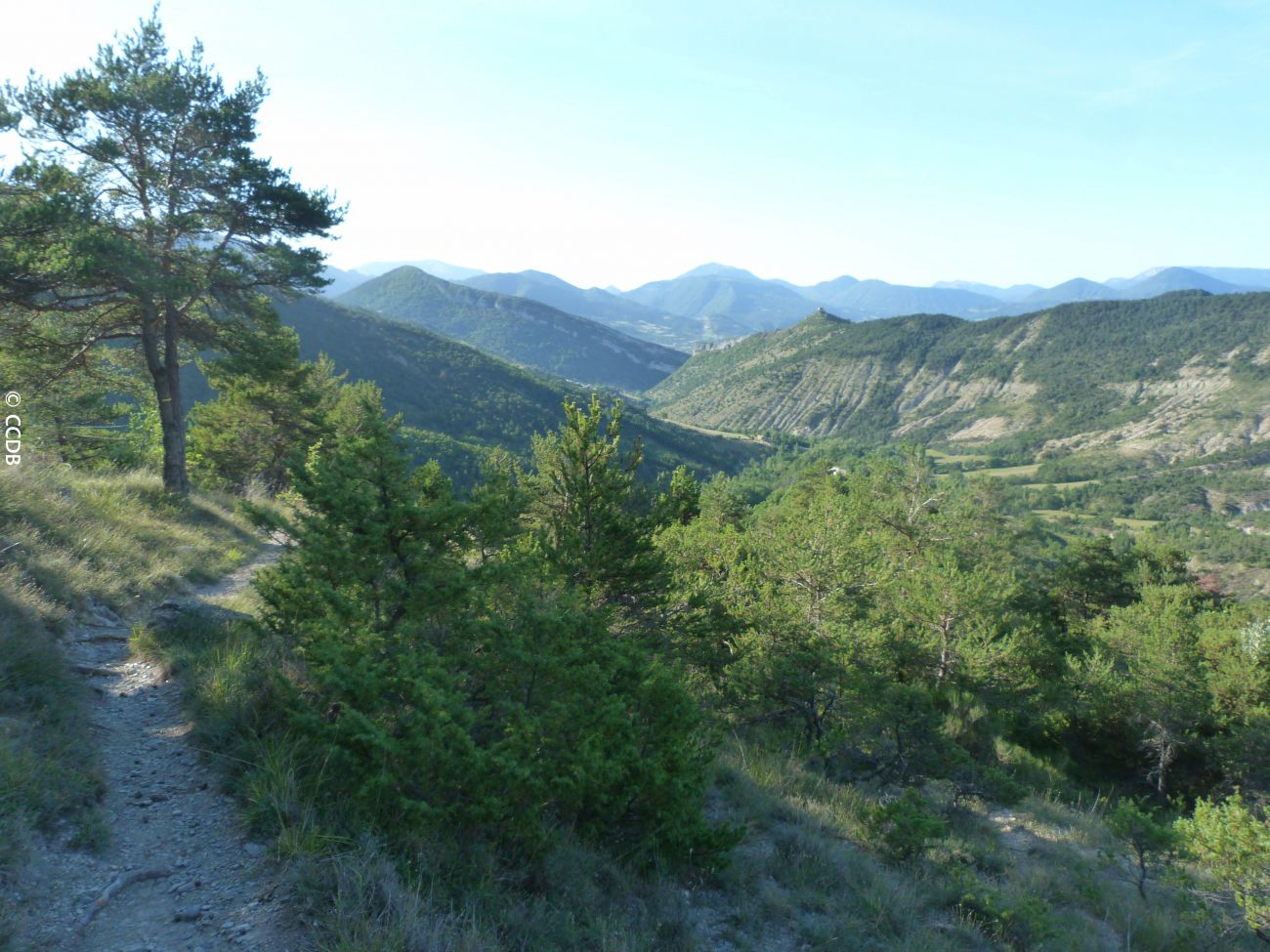::5:: De là, possibilité de partir à gauche pour rejoindre le GR9 à Fonderesse (alt. 849 m) et profiter du beau panorama sur les environs.