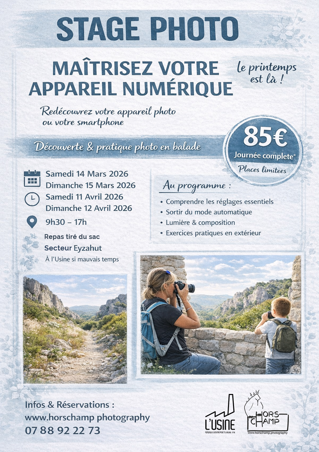 Home https://www.dieulefit-tourisme.com/nl › Uw verblijf Uw verblijf › Agenda Agenda › Stages et workshops Stages et workshops › Stage photo – Maîtrisez votre appareil numérique