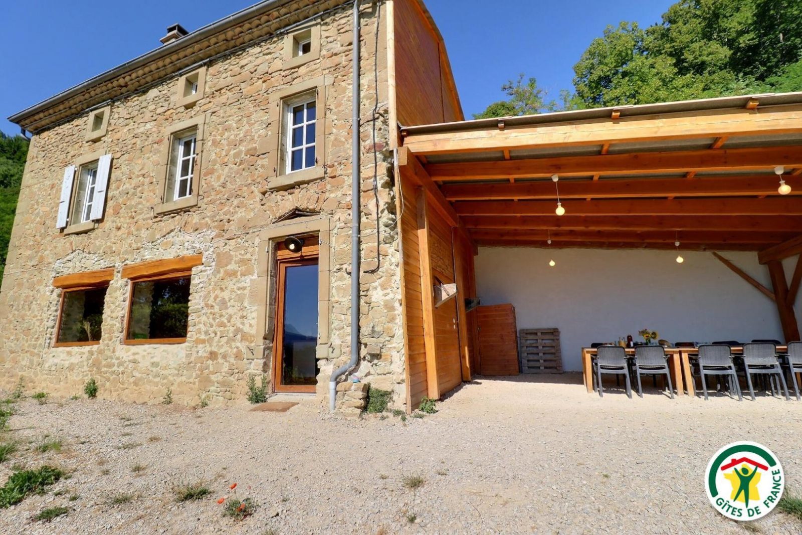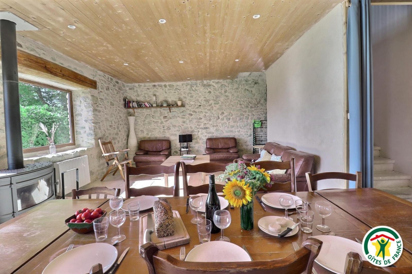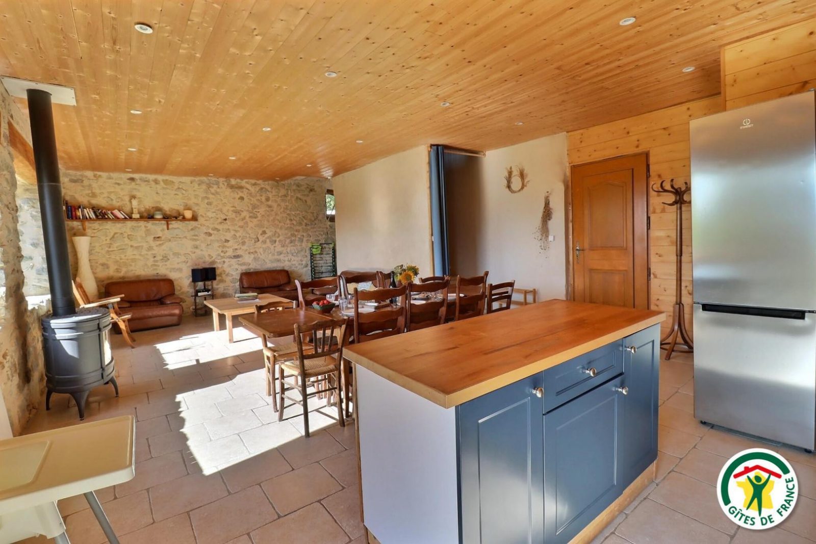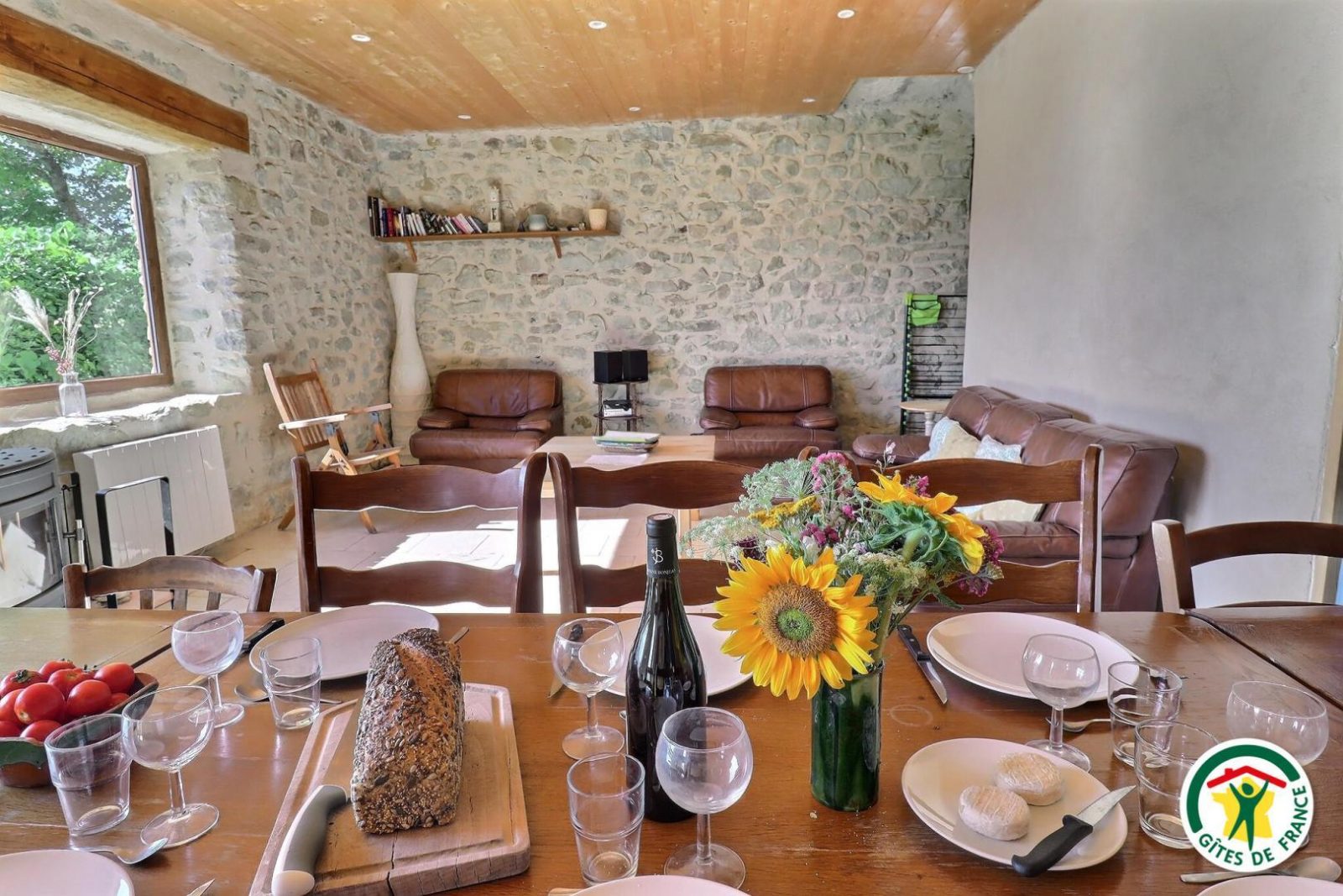 Vrijstaand huis midden in de natuur, volledig gerenoveerd met prachtig uitzicht. Begane grond: ruime woonkamer met ingerichte keuken, eethoek en zithoek (bank, fauteuils), apart toilet. 1e verdieping: 3 slaapkamers (1x140) (1x140) (1x140), doucheruimte (douchecabine, wastafel) en wc. 2e verdieping: zolderkamer omgebouwd tot slaapzaal (6x90). Beschut terras, tuinmeubels, ligstoelen, barbecue. Toegang via een onverharde weg van 600 m.