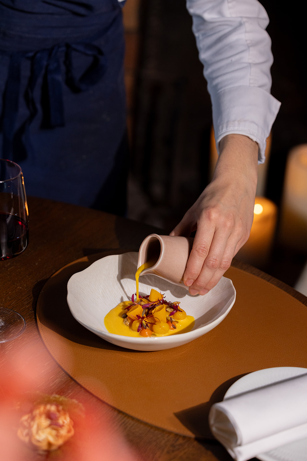 De 31 hectare wijngaarden, weiden en lavendelvelden zover het oog reikt, vormen een schilderachtige achtergrond voor een onvergetelijk verblijf in de Drôme, tussen Grignan en Montélimar en aan de poort van de Provence. Het hotel is gevestigd in een 16e-eeuwse woning rond een vierkante toren uit de Middeleeuwen en was vroeger een bijgebouw van de Commanderie de Saint-Jean, in het hart van een uitgestrekt wijndomein. De 2850m2 gebouwen hebben alle charme van weleer behouden en zijn verdeeld in een kasteel, een bastide en een spa, allemaal in een sublieme natuurlijke omgeving. Trakteer jezelf op een lokaal en gastronomisch intermezzo aan onze gastronomische tafel. In de winter, in onze prachtige gewelfde stenen eetzaal, of op zonnige dagen in de schaduw van de eeuwenoude bomen op het panoramische terras, biedt onze chef een genereuze, verfijnde keuken, zonder poespas of gedoe, met als doel het beste uit onze lokale producten te halen. Naarmate de seizoenen veranderen, deelt hij zijn talent en knowhow door middel van recepten die de lokale producten sublimeren.