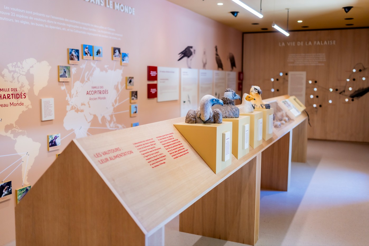 Espace muséographique consacré aux vautours: film, exposition, toit terrasse équipé de télescopes.
